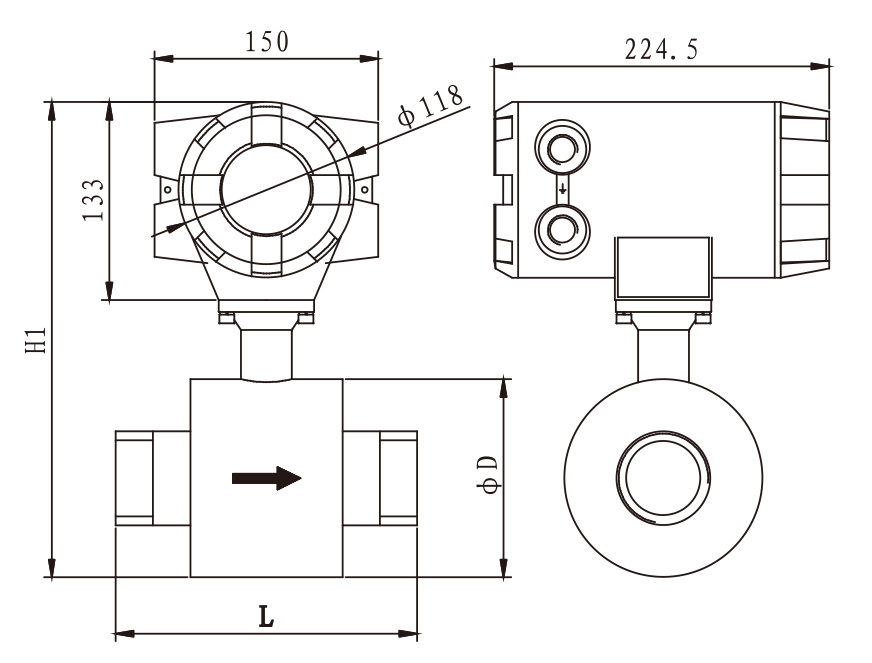 一體型是將轉換器和傳感器組裝在一起成為一個整體,連接線在儀表內部,使用比較簡便,由于不常用電纜,外界干擾也比較小。一體型的流量計一般用于小口徑的儀表,若傳感器安裝在高處或難于觀測的場合,高溫或有較大振動的場合,轉換器的電子元件較難承受,則不宜使用一體型的電磁流量計。
