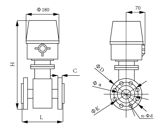 | DN | L(mm) | H | D | K | n-¢d | C | 重量 | 耐壓 | ||||||||||