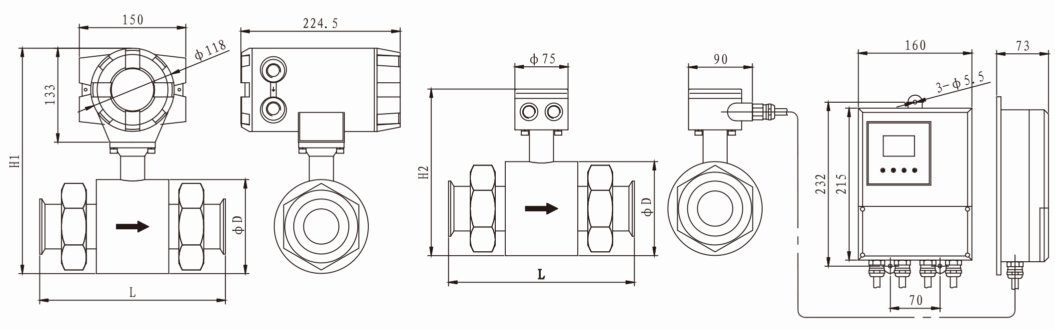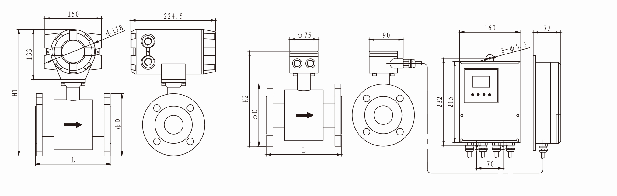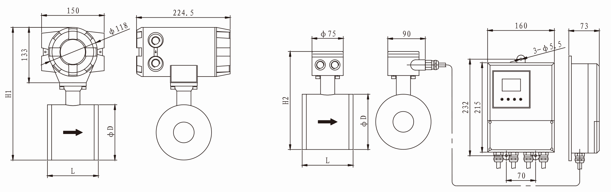 說明: 夾持型電磁流量計標配為二個測量電極,在選型時一定要配置接地環(huán)。否則流量計無法正常工作。