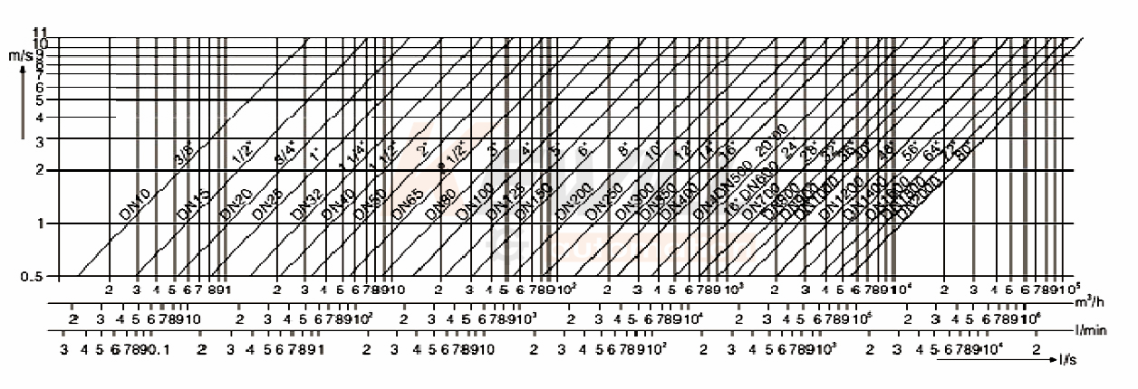 單位: V:[m/s], Q : [m³/h], DN :[mm]