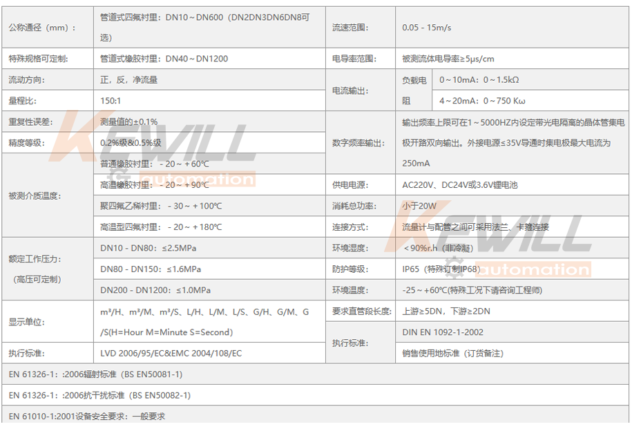 ●被測液體電導率最低可達5μS/cm,配合各種襯里材料,可適用于測量各種酸、堿、鹽溶液及泥漿、礦漿、紙漿等介質的流量,精準度較高,