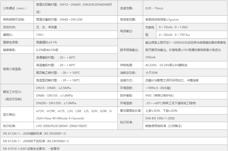 | 瞬時流量和積累流量雙向測量功能 | 正反向流量均可精確測量 | ||||||||||||||||||||