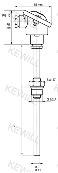 TK62包含一個PT100熱電阻探頭,PT100阻值會隨著溫度變化而變化,PT100有二線制,三線制,四線制多種規格可供選擇。