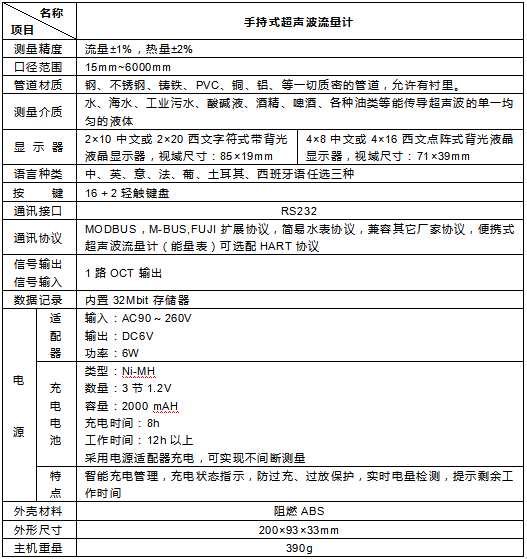 1、手持式超聲波流量計(jì)用于測(cè)量能傳導(dǎo)超聲波的單一均勻液體的流量和熱量。