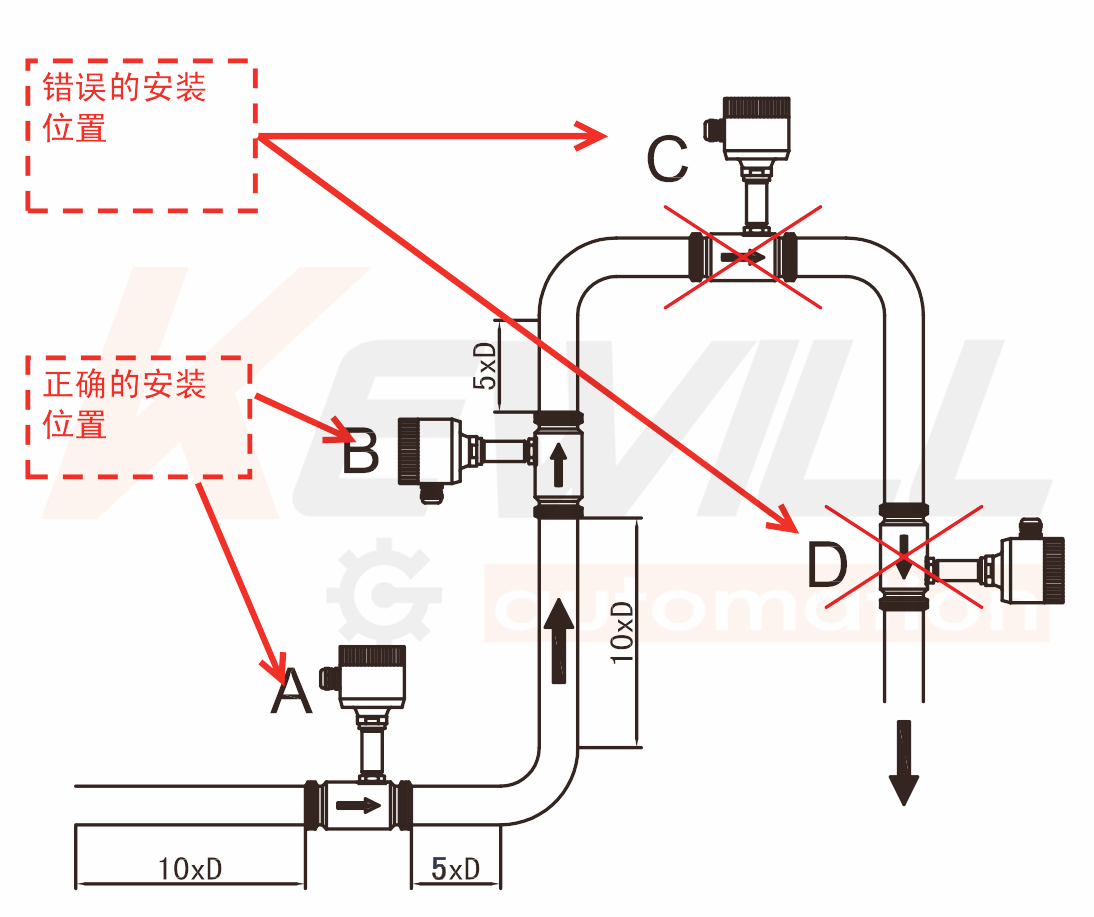 | 安裝位置的影響: | 需確保傳感器滿管和保證了前后足夠的直管段,則安裝無影響 |